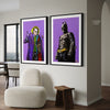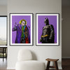Originally painted in 2021 using acrylic and spray paint on wood panel, these works fuse raw texture with vibrant realism, all set against bold violet backdrops that electrify the tension between hero and villain. Each print is faithfully reproduced in large, format 20” x 30” size, bringing gallery level presence to your space.